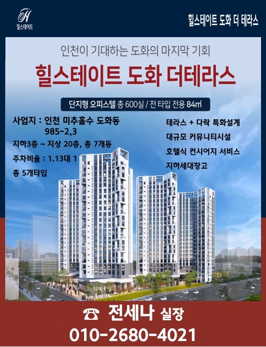 | [힐스테이트 도화 더 테라스] 착한 분양가! 테라스 있는 오피스텔 분양 임박!! (0) | 2022.02.06 |